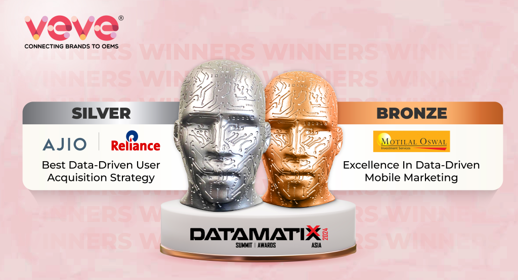 Mumbai, 16th August 2024: VEVE has been honored with two prestigious awards at this year’s DATAMATIXX Awards ceremony, recognizing their exceptional campaigns with Motilal Oswal and Vibrant Ajio – prominent brands in India’s BFSI and E-commerce sectors, respectively.